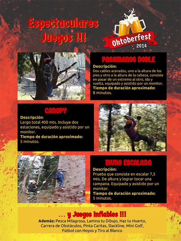 Habrá nuevas entretenciones Outdoor, tales como Pasamanos Doble, Canopy y Muro Escalada.